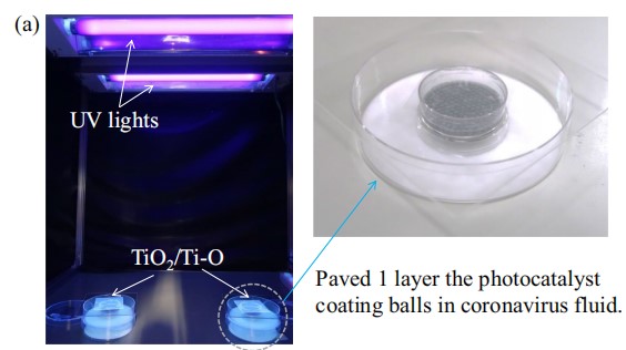 图4 TiO2/Ti光催化小球在紫外光照射下杀灭新冠病毒试验