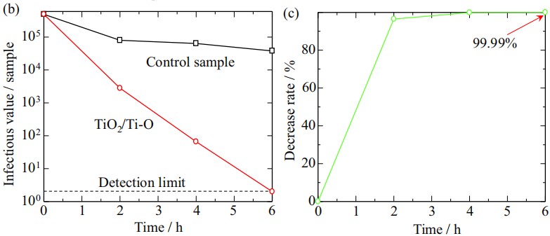 图5 TiO2/Ti光催化小球在紫外光照射下杀灭新冠病毒试验