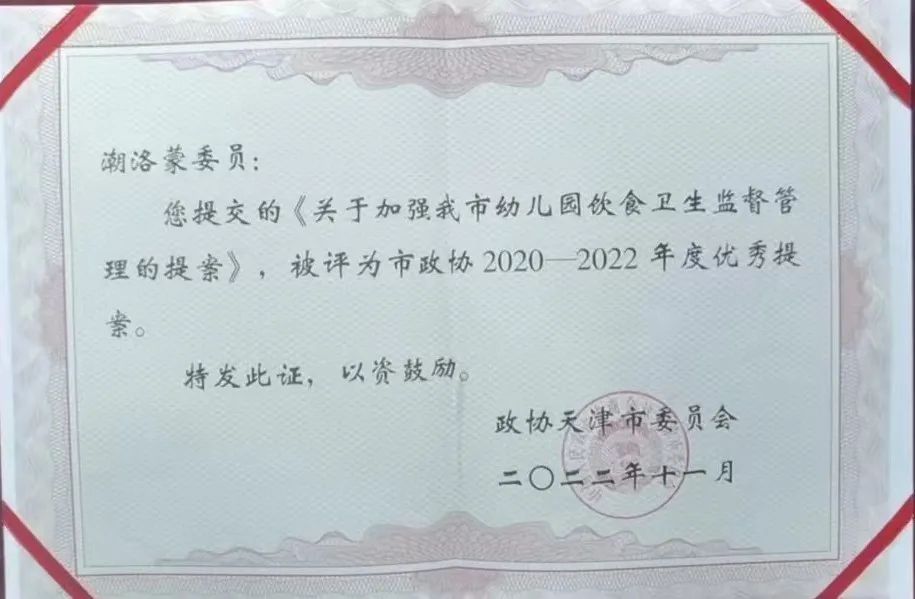 天津市政协第十四届政协委员刘忠教授、潮洛蒙教授分别荣获“市政协2020-2022年度优秀提案”奖。