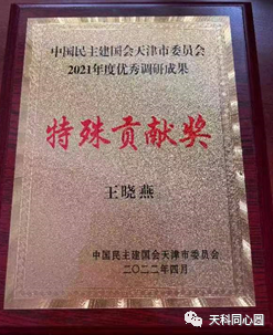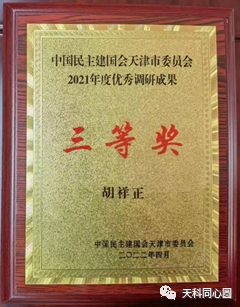 2022年4月15日,中国民主建国会天津市委会召开大会,就2021年度参政议政工作先进集体和优秀调研成果执笔人进行了表彰。