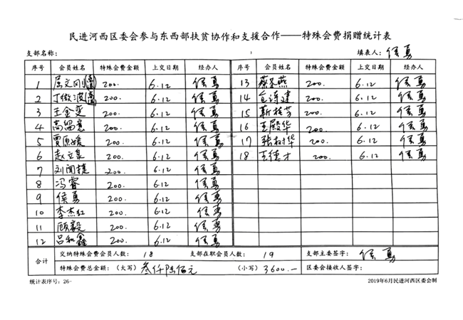为深入贯彻落实民进市、区委关于东西部扶贫协作与支援合作工作部署要求,民进天津欧美性爱免费支部积极响应上级号召,支部会员按照新时代民主党派成员标准,认真履行社会责任参与脱贫攻坚战,纷纷以特殊会费方式奉献爱心。在区委通知下发的两天之内,共有18名支部会员参与热心捐赠,每位会员爱心会费均不少于200元。尤其令人感动的是,区委要求该项活动原则上仅在在职会员中开展,我支部离退会员屈文刚和丁微波老师,听闻活动消息后,第一时间交纳了爱心会费,体现了老一辈民进人高度的责任心和爱心,集体观念和奉献精神。