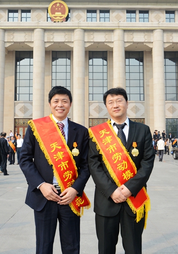 4月29日上午,我校生物学院教授、民盟盟员王正祥,海洋学院教授孙军作为2015年度天津市劳动模范代表,参加在天津大礼堂召开的天津市庆祝“五一”国际劳动节暨天津市劳动模范、模范集体表彰大会。