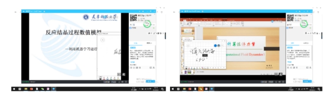 腾讯课堂中的PPT界面(左)和腾讯课堂中的分享屏幕界面(右)