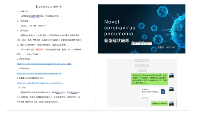 《化工专业英语》研讨课方式、学生作品和教师在微信群中指导