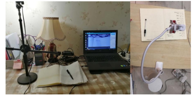 2.引入外接摄像头或借助手机摄像头,在腾讯课堂中开启“画中画”,需固定摄像头垂直向下照,如下图所示为外接摄像头。
