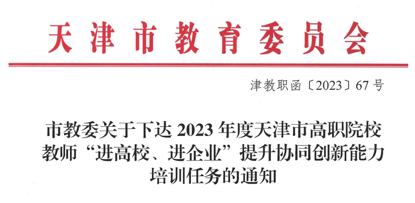 近日,天津市教委下达了2023年度天津市职业院校教师“进高校、进企业”提升协同创新能力培训任务,我校成功获批“进高校”项目2项。