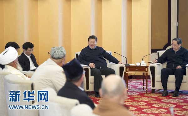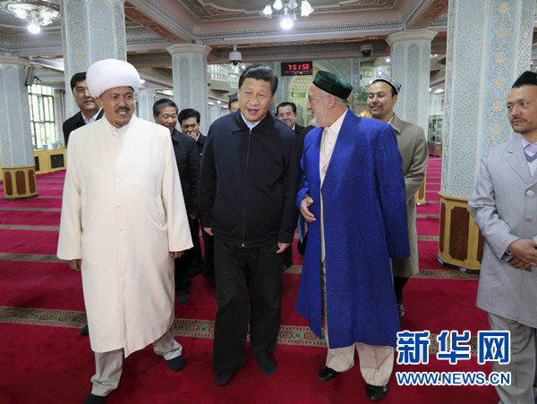 习近平对做好宗教工作高度重视。30日上午,他来到乌鲁木齐市洋行清真寺,同该寺伊玛目穆合特热木·谢日甫江、理事长白克力·亚克甫等交谈,了解有关情况。之后,习近平同新疆宗教代表人士进行了座谈。新疆伊斯兰教经学院院长阿不都热克甫大毛拉、白大寺伊玛目阿布都西克尔·热合木都拉、自治区佛教协会会长夏立宛、昌吉市陕西大寺阿訇寇金发等先后发言,习近平不时同他们交流。习近平希望新疆广大宗教界人士继续发扬爱国爱民的优良传统,旗帜鲜明反对宗教极端思想,通过科学解经引导广大信教群众正确理解宗教教义,让大家都能安安心心发展经济、改善生活。习近平表示相信,新疆广大宗教界人士一定能够申明大义、站稳立场、主动工作,为祖国和新疆改革发展作出自己的新贡献。